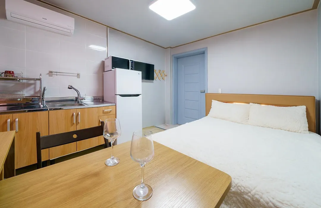 Experience ultimate comfort in the Incheon accommodation's kitchen, supplied with a refrigerator.